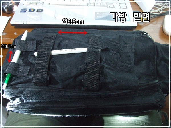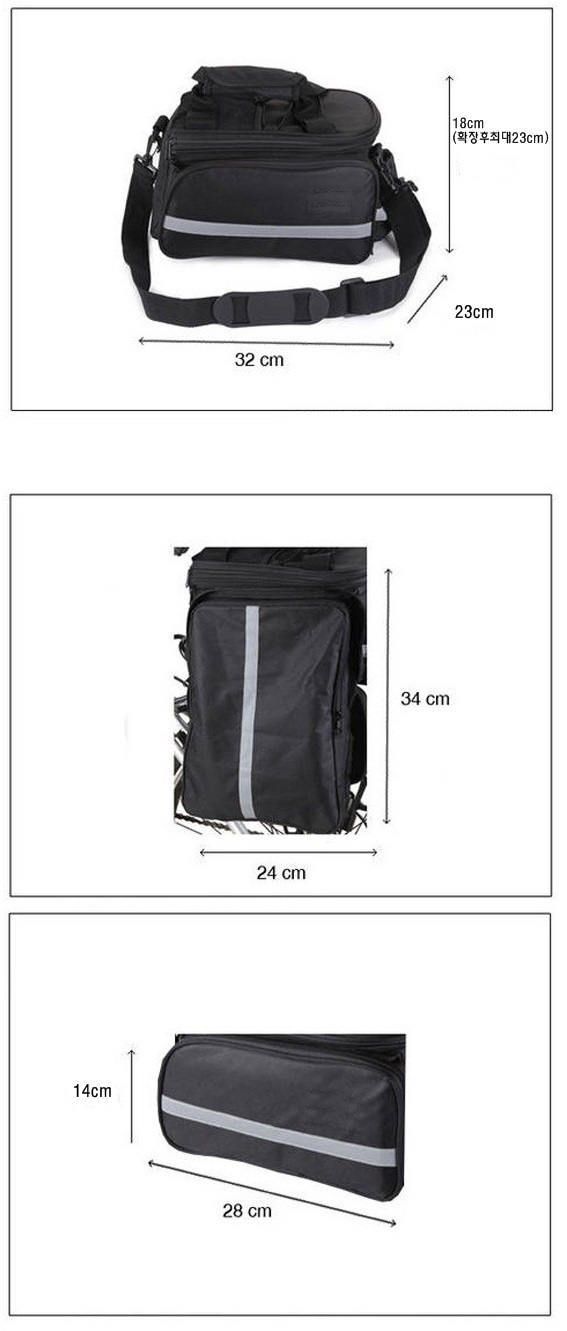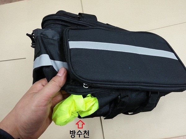 주의:가방밑면 벨크로를 짐받이에 끼워 고정(벨크로고정이므로 약간 움직일 수 있고, 너무 무거운 짐은 적합하지 않습니다)